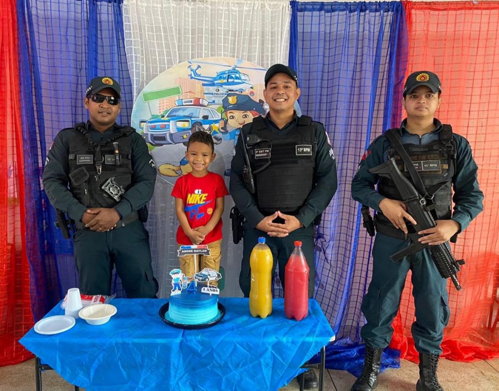 A guarnição da Polícia Militar, composta pelo Sargento Rodrigo e os soldados Barrada e Tawan, fez questão de prestigiar o evento e realizou o sonho de André ao aparecer uniformizada na festa. A chegada dos policiais trouxe uma emoção contagiante ao local. Os olhos do menino brilharam e, com um sorriso largo, ele os recebeu com alegria, sendo esse um momento que ficará marcado para sempre em sua memória.