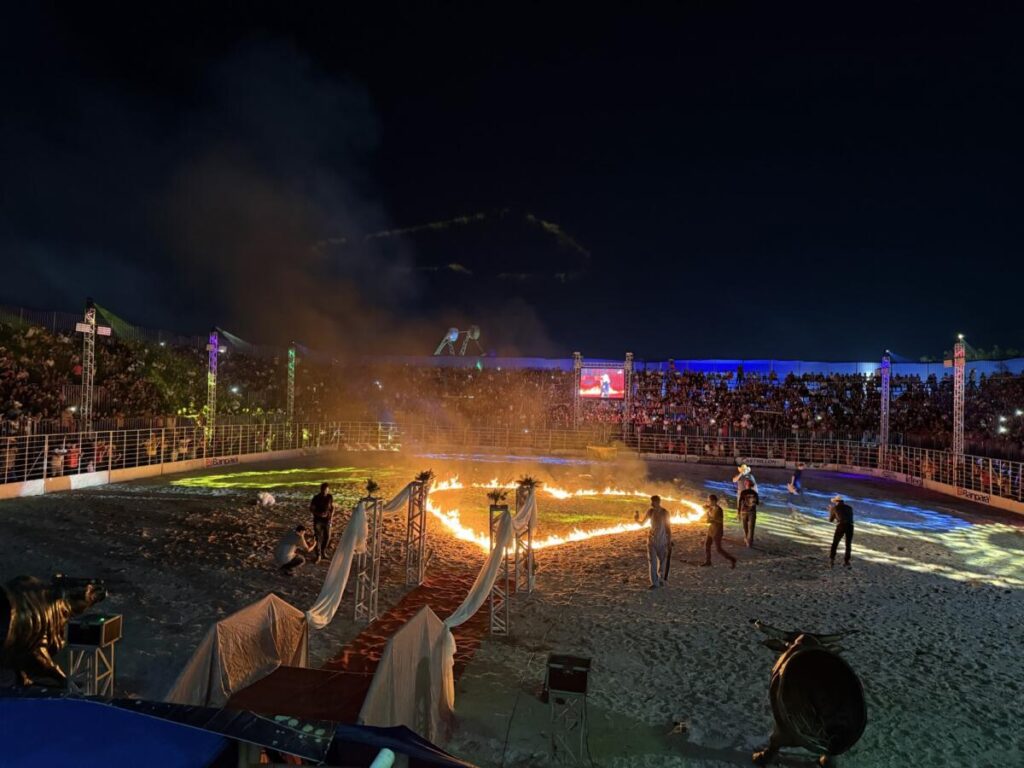 Um dos momentos mais aguardados da programação foi o rodeio, que reuniu competidores de várias partes do estado e proporcionou emoção ao público presente nas arquibancadas.