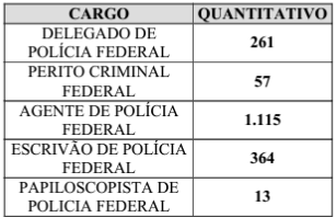 A PF pediu autorização para realizar o concurso nos seguintes cargos: