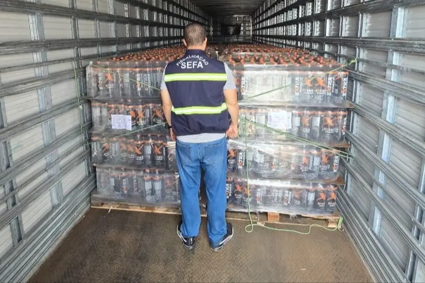 Garrafas de uísque e vodca, unidades de vodca com suco de frutas e latas de energéticos estavam sendo transportadas sem o devido recolhimento do ICMS