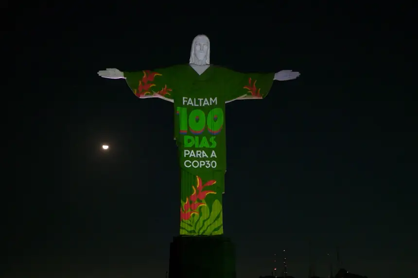 Desde as 21h do último sábado (2), o monumento ao Cristo Redentor está iluminado com uma projeção que marca os 100 dias que faltam para a 30ª Conferência das Nações Unidas sobre Mudanças Climáticas (COP30), que será realizada em Belém de 10 a 21 de novembro. A exposição, resultado da parceria entre o Governo do Pará e o Santuário Cristo Redentor, levou ao principal cartão-postal do Brasil imagens da Amazônia, reforçando o papel central da floresta para o equilíbrio climático do planeta, além de imagens dos povos originários, de animais, das bandeiras do Brasil e do Pará e da logomarca oficial da conferência. A instalação visual segue até às 23h.
