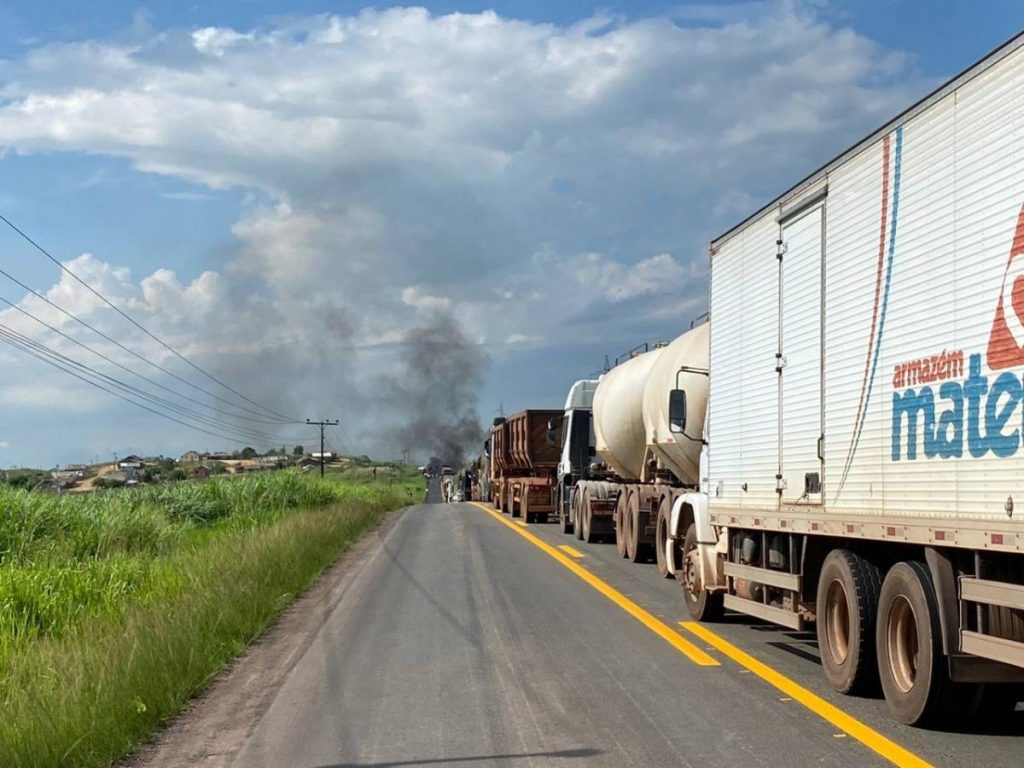 Grupo de pessoas pertencente ao Movimento Sem-Terra (MST) está promovendo bloqueio à BR-155, em frente à Fazenda Cedro, em Marabá. O engarrafamento já é quilométrico dos dois lados da rodovia, que dá acesso ao sul do Pará (antigo trecho sul da PA-150). Segundo as lideranças, a motivação é um protesto contra a reintegração de posse determinada pela Justiça e prevista para o dia 2 de dezembro.