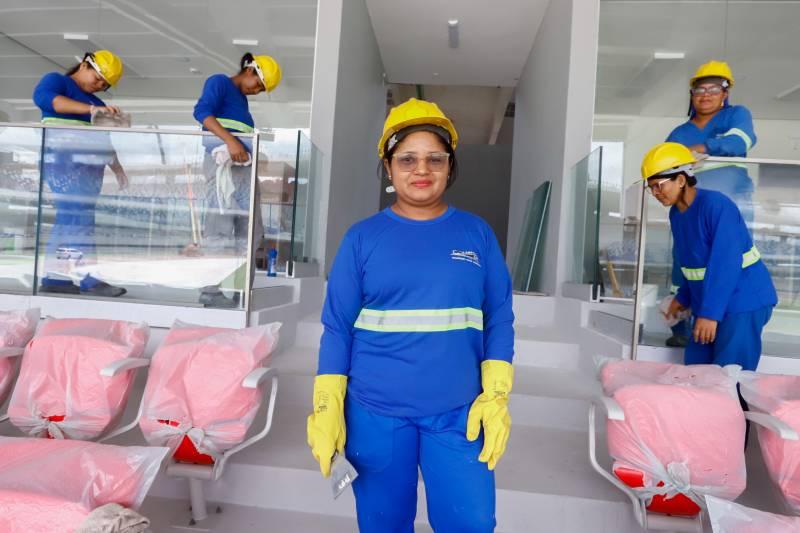 Além de Cristina, diretamente na área da construção civil, grandes obras contam com a participação feminina. No novo Mangueirão, 69 mulheres trabalham em cargos administrativos e operacionais, como a Irani Castro, da área de serviços gerais, que ressalta a conquista de seu espaço na área civil.