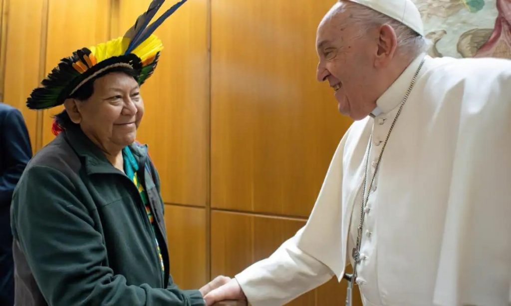 O Papa Francisco recebeu na quarta-feira (10) o líder yanomami, Davi Kopenawa.