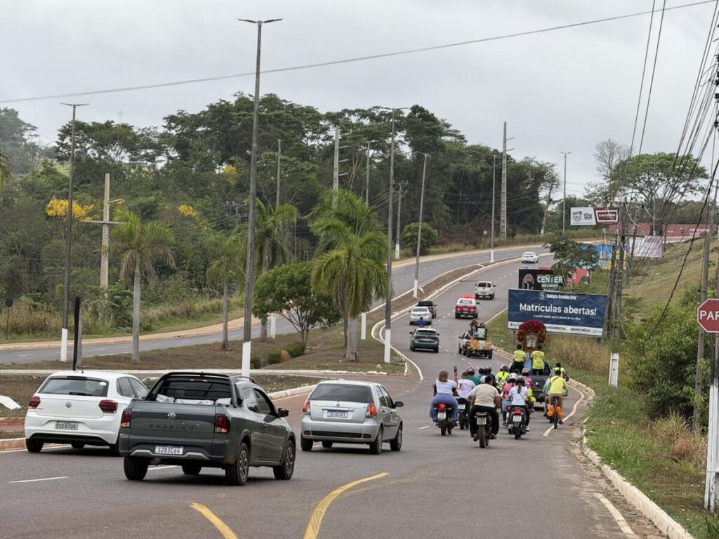 A programação teve início com a celebração da Santa Missa, preparando espiritualmente os fiéis para o percurso que se seguiria. Logo após, por volta das 9h30, a Imagem Peregrina de Nossa Senhora de Nazaré partiu da Paróquia Santa Rita de Cássia, na Vila Permanente, iniciando o trajeto pela rodovia BR-422 e pelas principais avenidas da cidade.