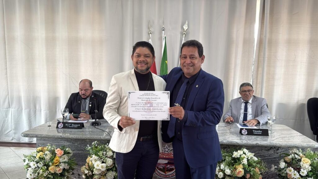 Na terça-feira, 16 de dezembro, a Câmara Municipal de Tucuruí realizou uma sessão solene para a entrega do Título de Cidadão Honorífico do Município de Tucuruí. A homenagem reconhece personalidades que, mesmo não sendo naturais da cidade, contribuíram de forma significativa para o desenvolvimento social, cultural e institucional do município.