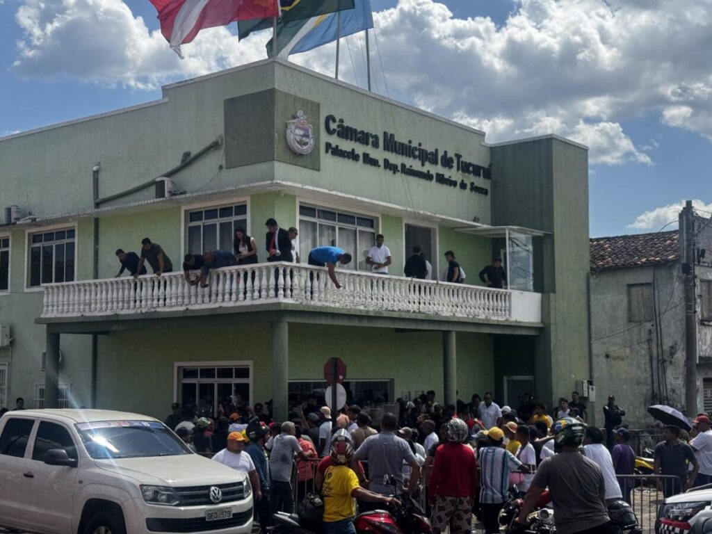 Antes da sessão, manifestantes ligados à oposição se reuniram em frente à Câmara para protestar contra a condução do processo. O grupo levantava questionamentos sobre a legalidade e a celeridade da convocação, além de críticas à condução interna da Casa Legislativa.