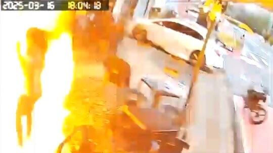 Câmeras de segurança registraram o momento exato da explosão. Nas imagens, uma mulher vestindo um uniforme, aparentemente do estabelecimento, aparece do lado de fora da lanchonete, entre mesas e cadeiras. De repente, ela é atingida pelas chamas e consegue correr para se afastar do fogo.