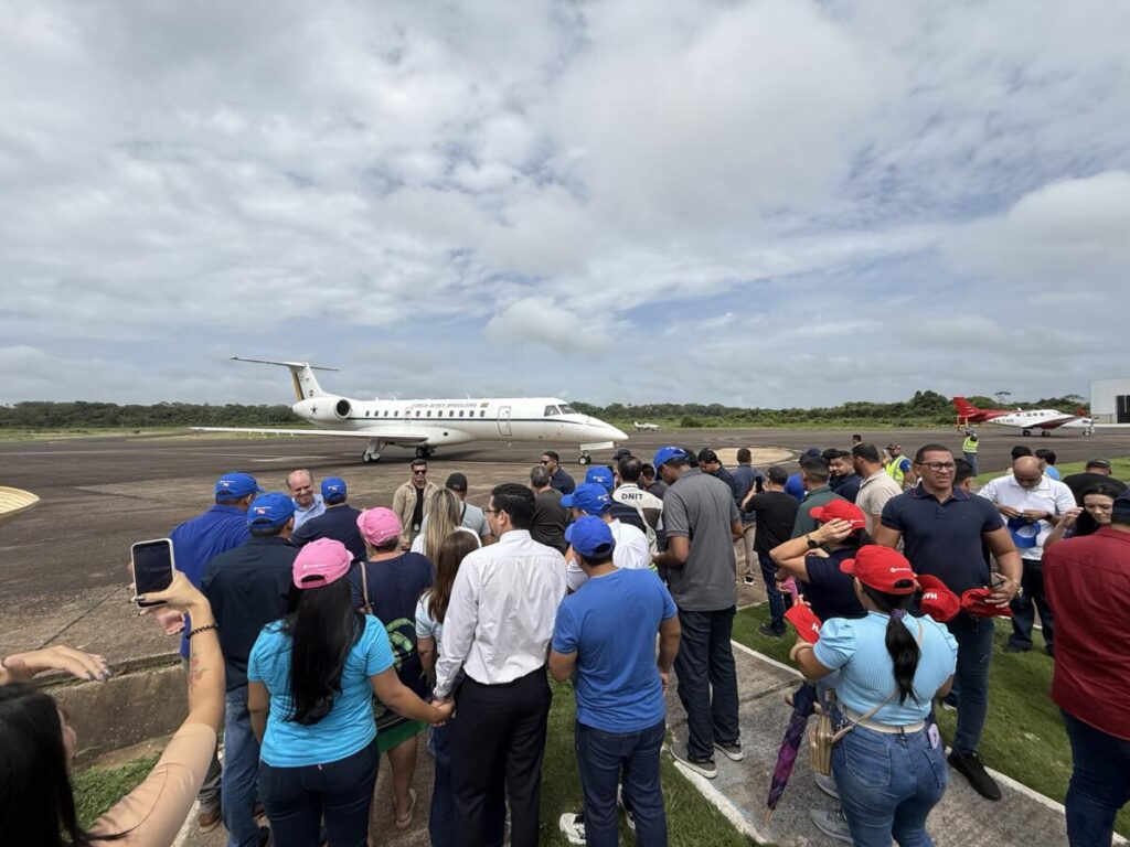 O governador do Pará, Helder Barbalho, o ministro dos Transportes do Governo Federal, Renan Filho, e demais autoridades desembarcaram no aeroporto de Tucuruí nesta quarta-feira para cumprir agenda oficial no município. Em seguida, a comitiva seguiu em deslocamento até o local da inauguração do trecho da rodovia, no sentido Tucuruí–Novo Repartimento.