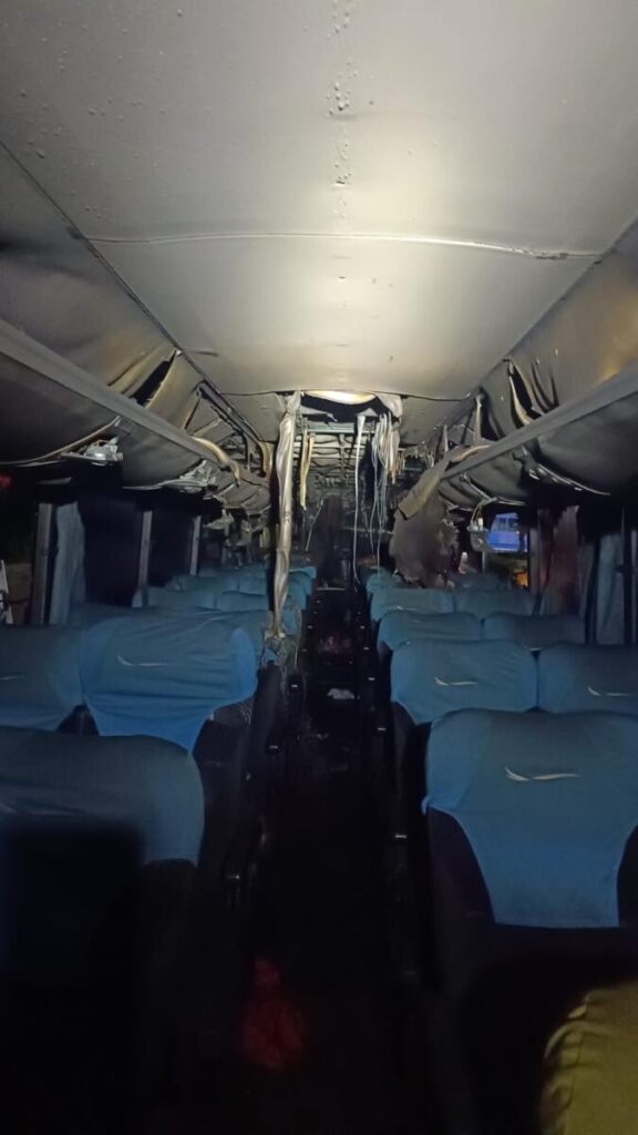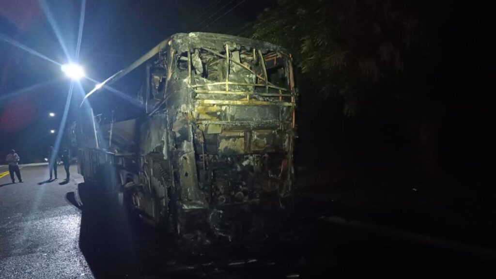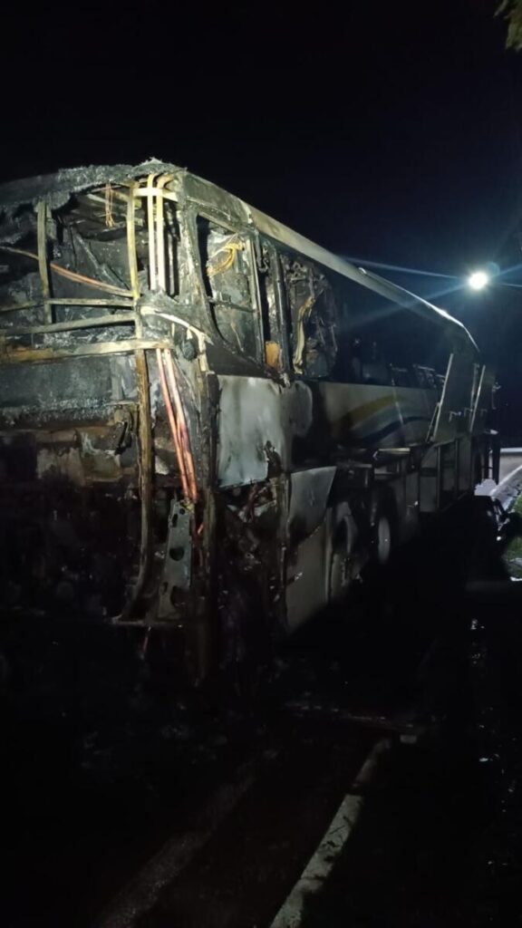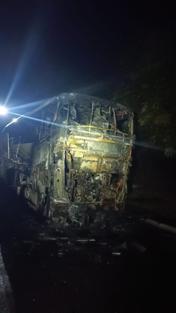 Na madrugada desta quarta-feira (27), um ônibus pegou fogo próximo à guarita de entrada da Vila Permanente, em Tucuruí.