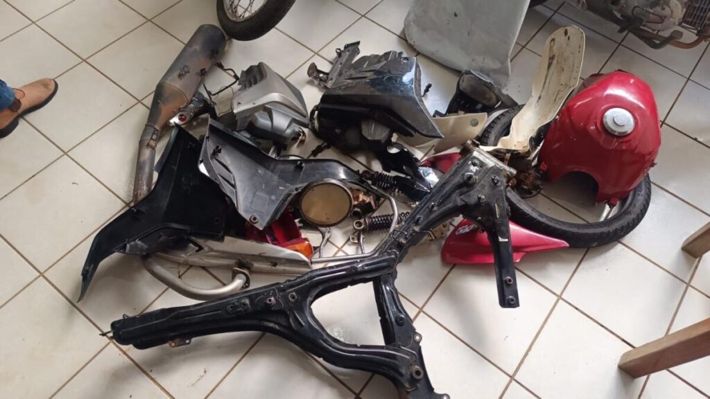 De acordo com a PM, as equipes se deslocaram até uma residência no bairro Palmares 2, onde funcionava um possível ponto de desmanche. No local, foram encontradas diversas peças de motos sem procedência. Um menor foi apreendido e confessou envolvimento em furtos recentes, o que levou à prisão de outros integrantes do grupo.