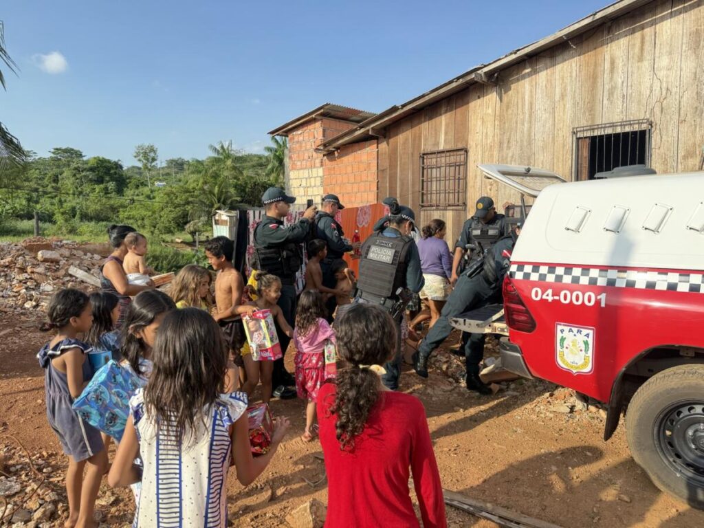 A Polícia Militar realizou uma ação solidária no km 11, em Tucuruí, levando alegria e apoio a crianças e famílias da comunidade. A iniciativa contou com a distribuição de brinquedos para as crianças e cestas básicas para famílias em situação de vulnerabilidade social.