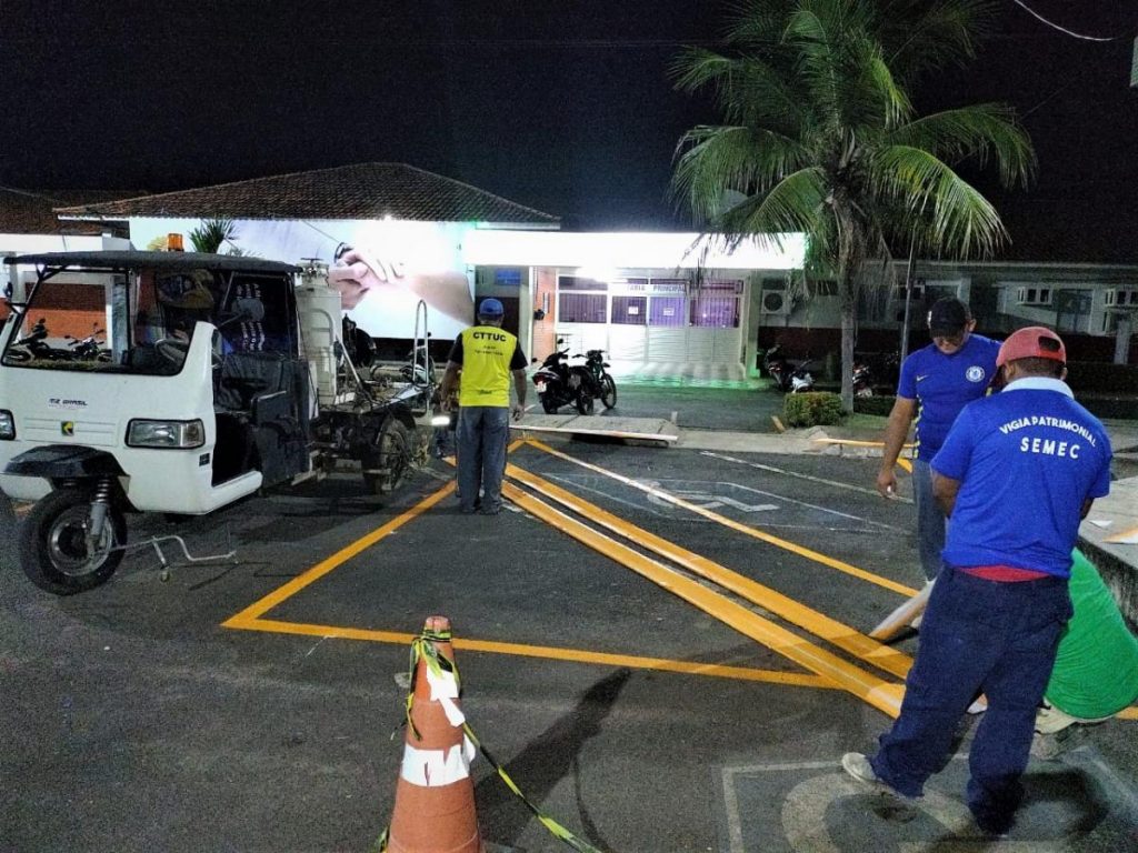 Buscando a garantia de mais conforto, comodidade e segurança aos servidores, colaboradores e usuários, a Prefeitura de Tucuruí, em parceria com o Complexo Hospitalar Regional de Tucuruí – HRT/Unacon, realizou por meio da Secretaria Municipal de Obras e da Companhia de Trânsito e Transporte de Tucuruí (CTTUC), a revitalização das luminárias e a organização de todo o sistema de sinalização do estacionamento e faixas de travessia de pedestres que dá acesso à unidade de saúde do Governo do Pará, na Vila Permanente, em Tucuruí.