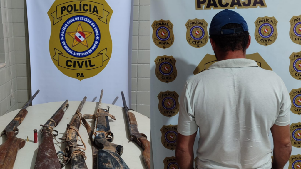 Neste sábado (6), a Polícia Civil do Pará prendeu em flagrante um homem pela posse irregular de três armas de fogo na zona rural do município de Pacajá, na região do Xingu.