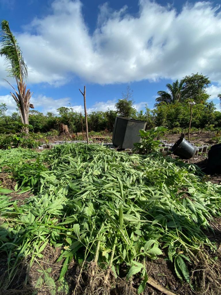 Uma área de aproximadamente 2.500 m² de plantação de maconha foi identificada e erradicada em uma região de mangue e mata fechada. Durante a operação foram inutilizados 2 mil pés de maconha, 400 sementeiras, sacos de fertilizantes e outros materiais utilizados na logística do cultivo ilícito.
