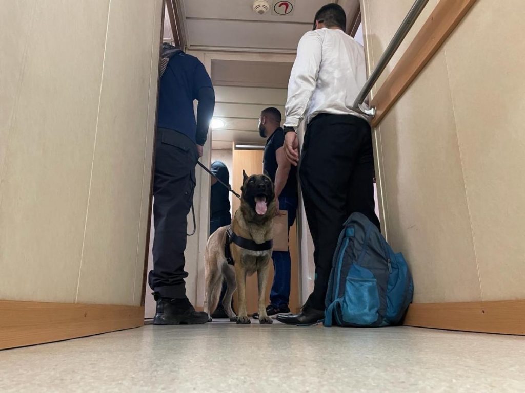 Ao saber da chegada de uma pessoa com mandado de prisão em aberto, a Polícia Federal pediu apoio à Receita Federal, que levou a cadela farejadora para buscar drogas, mas nada ilegal foi encontrado no dormitório do alvo.