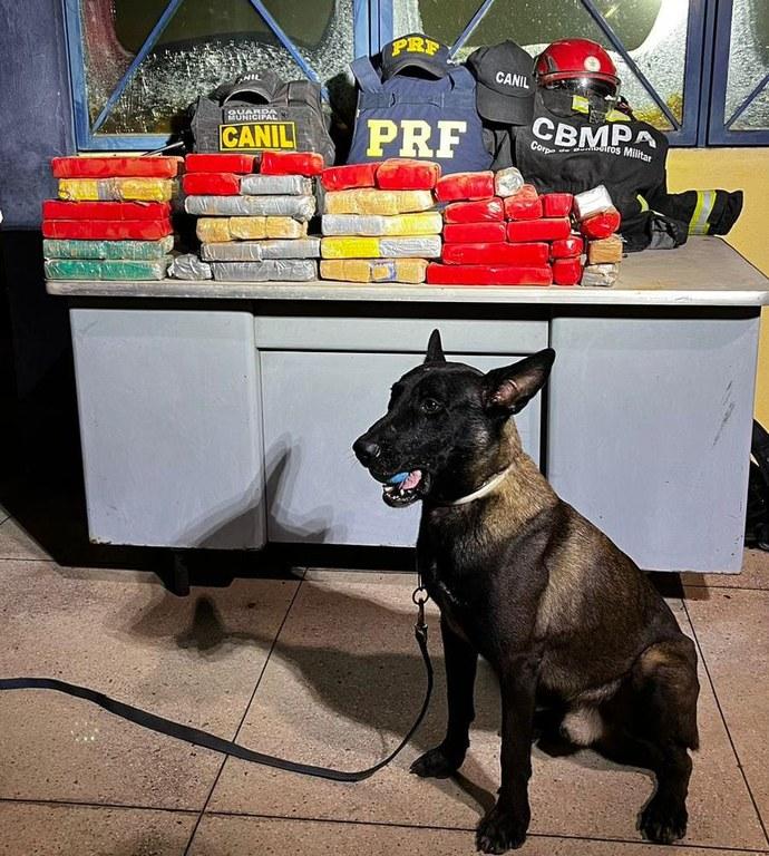 Com o auxílio do cão de faro da Guarda Municipal de Marabá (PA) e do Corpo de Bombeiros Militares, foram apreendidos 9,676 kg de cloridrato de cocaína e 15,207 kg de pasta base, totalizando aproximadamente 25 kg de drogas, no interior do carro.