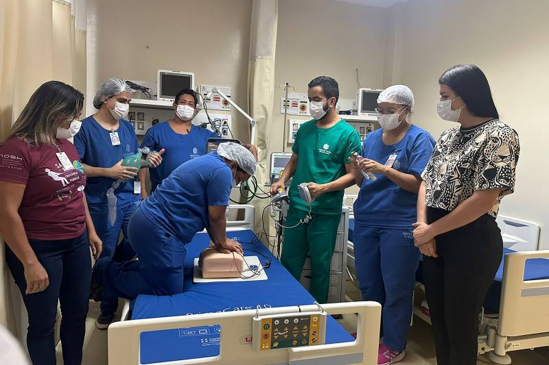 A capacitação, que incluiu atualizações sobre protocolos, foi realizado na Unidade de Cuidados Intermediários (UCI), tendo como facilitador o médico integrante do corpo clínico Jefferson Coelho. Ele abordou as diretrizes e técnicas necessárias para que os participantes estivessem aptos a reconhecer e agir rapidamente em casos de parada cardiorrespiratória (PCR).