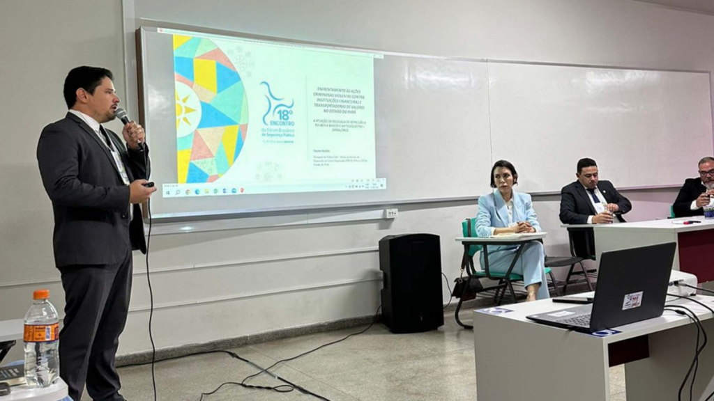 Além de divulgar ações realizadas pela DRCO no combate ao crime organizado no Pará, o agente também falou sobre o Comitê Permanente de Enfrentamento a Crimes Contra Instituições Financeiras e Transportadoras, iniciativa inovadora que reúne os órgãos de Segurança Pública com o objetivo de padronizar um Protocolo de Acionamento e elaboração de Planos de Defesa Contra Domínio de Cidades em todas as regiões paraenses.
