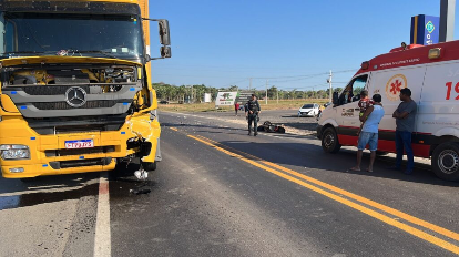 A motociclista Leoneide Alves de Souza, 47 anos, morreu na manhã de ontem, domingo (30), por volta das 8 horas, após seu veículo colidir com um caminhão dos Correios, em frente ao residencial Delta Park, na BR 230.