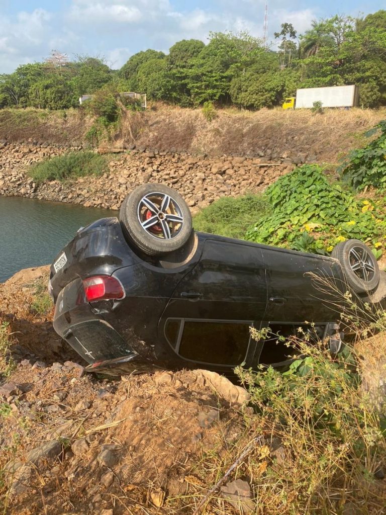 Trata-se de um carro Gol G5 de cor preta. Não há, até o momento, informações sobre o estado de saúde dos ocupantes, nem sobre o número exato de pessoas que estavam no automóvel no momento do acidente.