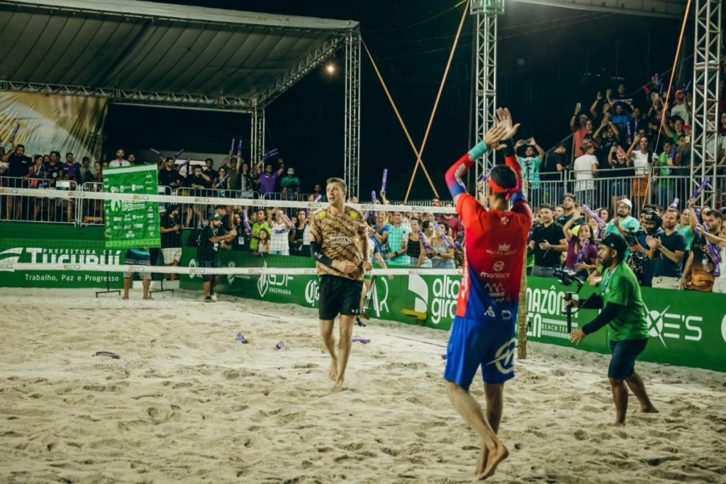 A dupla celebrou efusivamente a conquista com a torcida após o ponto final.