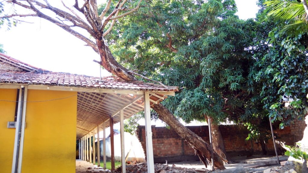 O caso ocorreu durante a tarde desta sexta-feira(09) no bairro São Sebastião. A árvore ficava no terreno de uma residência que fica localizada ao lado da escola Manoel Barbosa. Segundo relatos da moradora, o antigo dono descascou parte da árvore que estava seca e ela caiu com a força do vento.