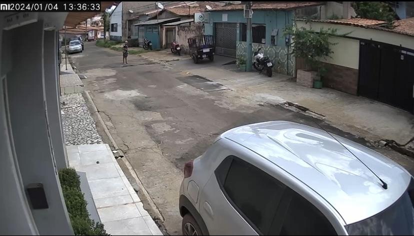 O fato ocorreu na Rua João Pessoa, no bairro da Cohab. No vídeo, um indivíduo caminha até o final da rua, observa a movimentação e, ao retornar, para em frente a uma residência onde está estacionada uma moto pop. Ao tentar montar no veículo, ele se assusta com algo, abandona o veículo e foge.