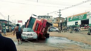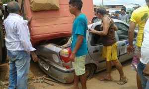 O acidente acidente aconteceu por volta das 11h45 desta quarta-feira(04), na entrada da BR-422. De acordo com um dos envolvidos, o caminhão desceu pela rua Fernando Guilhon e entrou com uma velocidade brusca na BR-422.