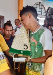 Para a grande maioria dos devotos o círio acabou mais cedo, mas para outros não. Um dos momentos mais emocionantes da procissão, foi a presença de um promesseiro, que resolveu seguir de joelhos todo o percurso. Fábio foi acompanhado por dezenas de pessoas que o ajudavam colocando papelões no chão para que ele não machucasse tanto os joelhos, o serviram água, abanavam e cantaram junto com ele. Mais ou menos na metade do percurso Fábio começou a vomitar, uma equipe do SAMU foi acionada, ele foi atendido e decidiu continuar pagando sua promessa. A força de vontade resultava em emoção e muitos registros. A chegada emocionante, aconteceu às 14:30 e foi marcada por muitas palmas, fogos e cantos. Após entrar na igreja o promesseiro ficou emocionado e foi amparado por outros devotos, em seguida a imagem de Nossa Senhora de Nazaré foi levada até Fábio, que cheio de emoção se abraçou com ela. Todos aguardavam ansiosamente para saber qual seria a graça alcançada, mas promessa não foi revelada, Fábio disse que não falaria, o silêncio foi respeitado.
