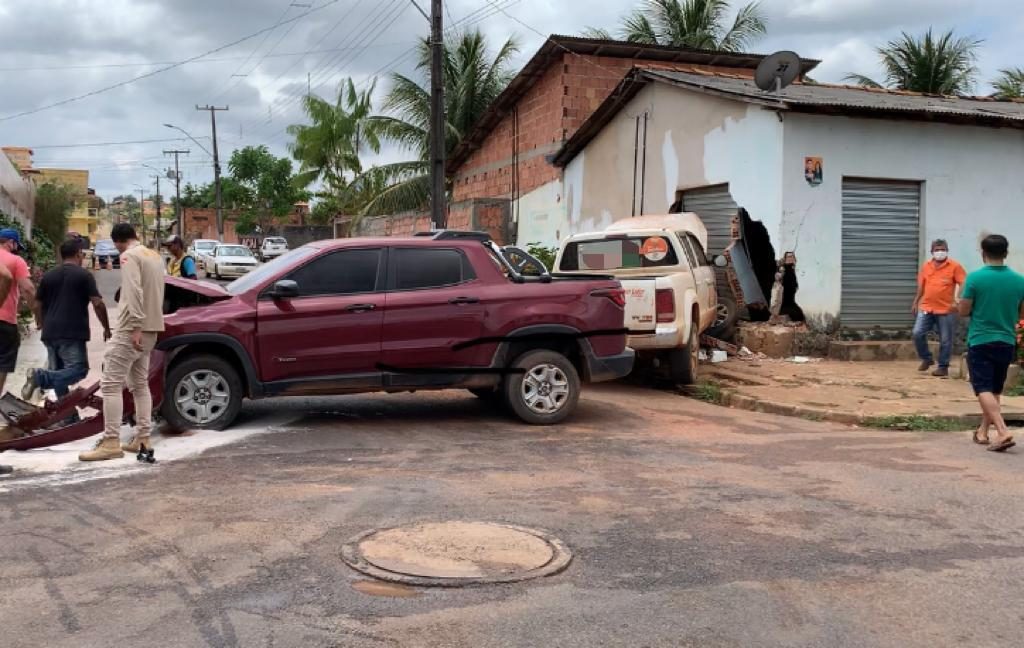 Uma caminhonete do tipo Amarok foi atingida por um veículo particular do tipo Fiat Touro. Com o impacto, a caminhonete acabou batendo em uma residência localizada na esquina da rua “D E”, por sorte não havia ninguém no cômodo e ninguém ficou ferido.