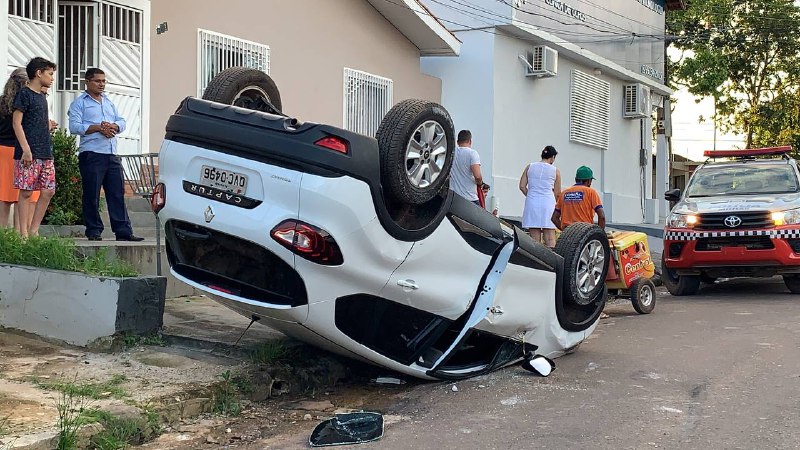 Uma câmera de monitoramento acabou registrando o momento da colisão e o capotamento do veículo do tipo Captur – Renault.