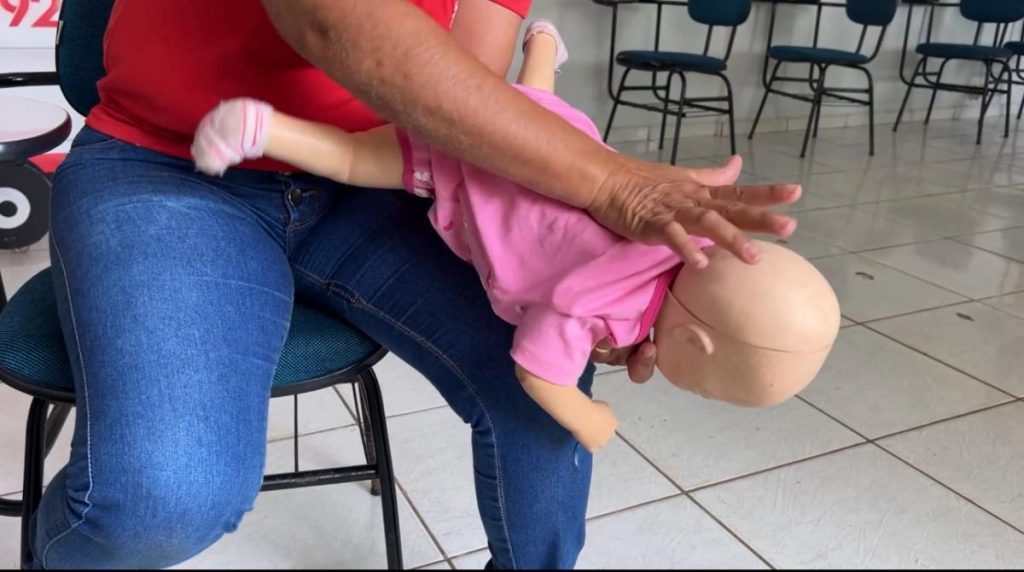 Para crianças maiores de um ano, a recomendação é a manobra de Heimlich, onde o socorrista se posiciona atrás da criança, envolve o abdômen e realiza compressões para que o objeto seja expelido. “É essencial que pais e cuidadores aprendam essas técnicas, pois elas fazem toda a diferença enquanto o atendimento especializado do SAMU não chega”, reforçou Elisia.