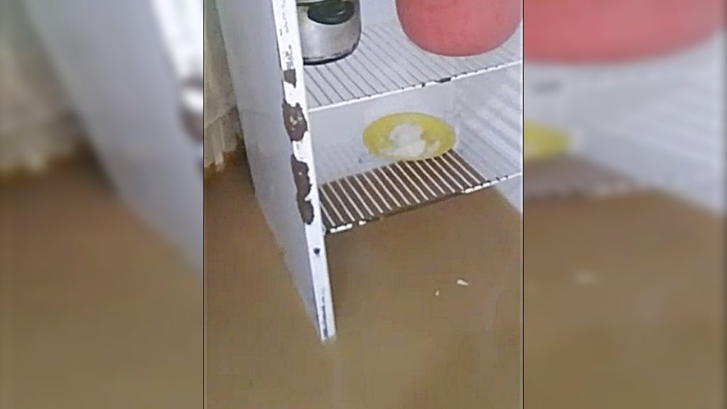 No bairro Beira Rio, uma moradora teve a casa invadida pela água e perdeu móveis e eletrodomésticos. Ela registou com celular os danos provocados pela chuva.