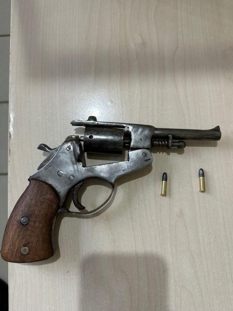 Após acompanhamento, a guarnição conseguiu alcançá-lo, momento em que o suspeito se rendeu. Durante a busca pessoal, foi encontrado em sua posse um revólver calibre .22, municiado.
