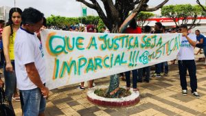 Muitos manifestantes estavam com cartazes, faixas, camisas e um carro de som também foi utilizado. Por volta das 10:30 da manhã o grupo seguiu em caminhada até a sede do Ministério Público Estadual (MPE).