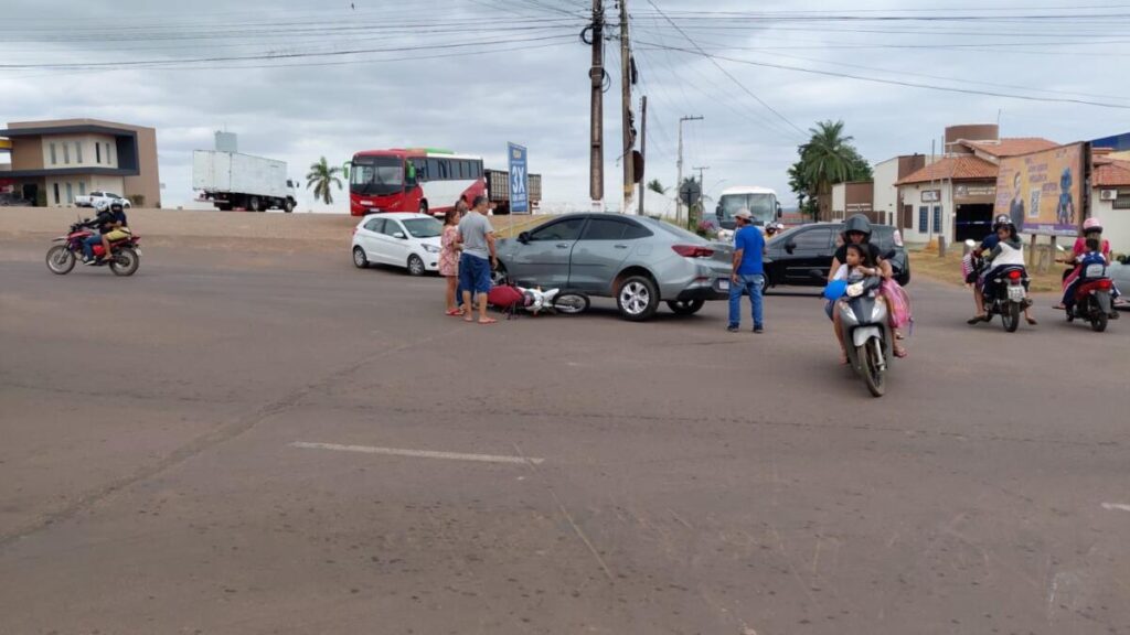 Um acidente foi registrado na tarde desta quinta-feira (6) na BR-422, nas proximidades da Rodoviária de Tucuruí. A colisão envolveu uma motocicleta e um carro em um cruzamento da via.