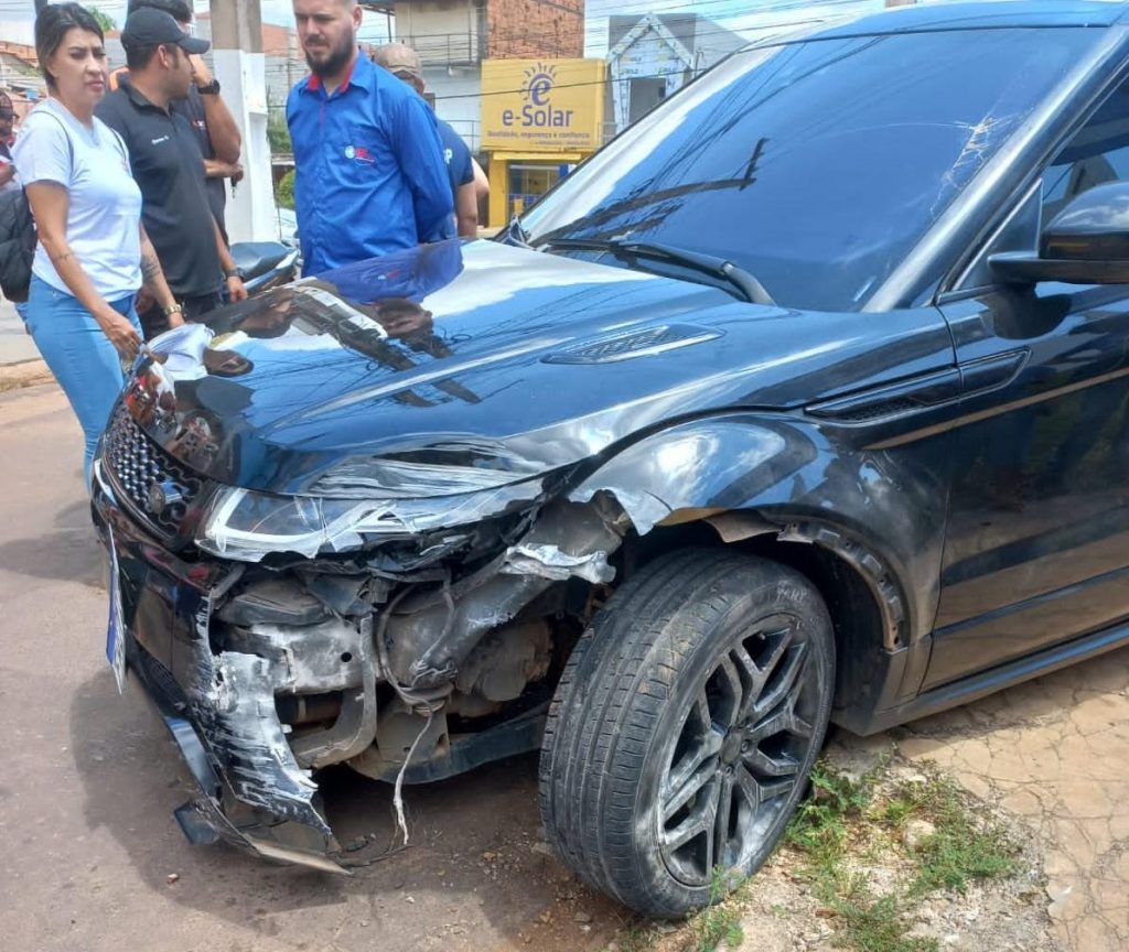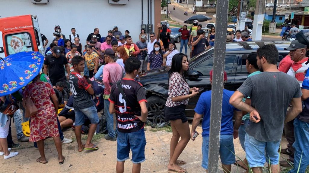 O acidente aconteceu no final da manhã desta quinta-feira (25), na Avenida Raimundo Veridiano Cardoso. O carro descontrolado atropelou três pessoas que já estavam na calçada.
