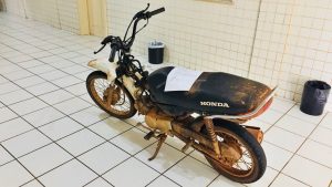 Um dos veículos ainda estava sem alteração, era uma Honda CG Titan e foi devolvida ao dono, já o outro veículo identificado como uma Honda Pop 100, estava sendo desmontado e foi encaminhada a delegacia para procedimentos cabíveis.