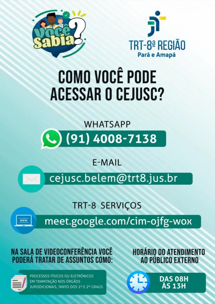 O edital de convocação foi publicado na página do Tribunal Regional do Trabalho da 8ª Região na internet e divulgado por outros meios disponíveis.